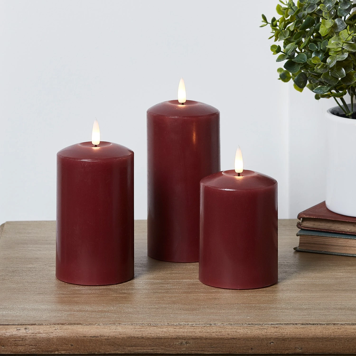 3 Bougies Pilliers TruGlow® Bordeaux à LED