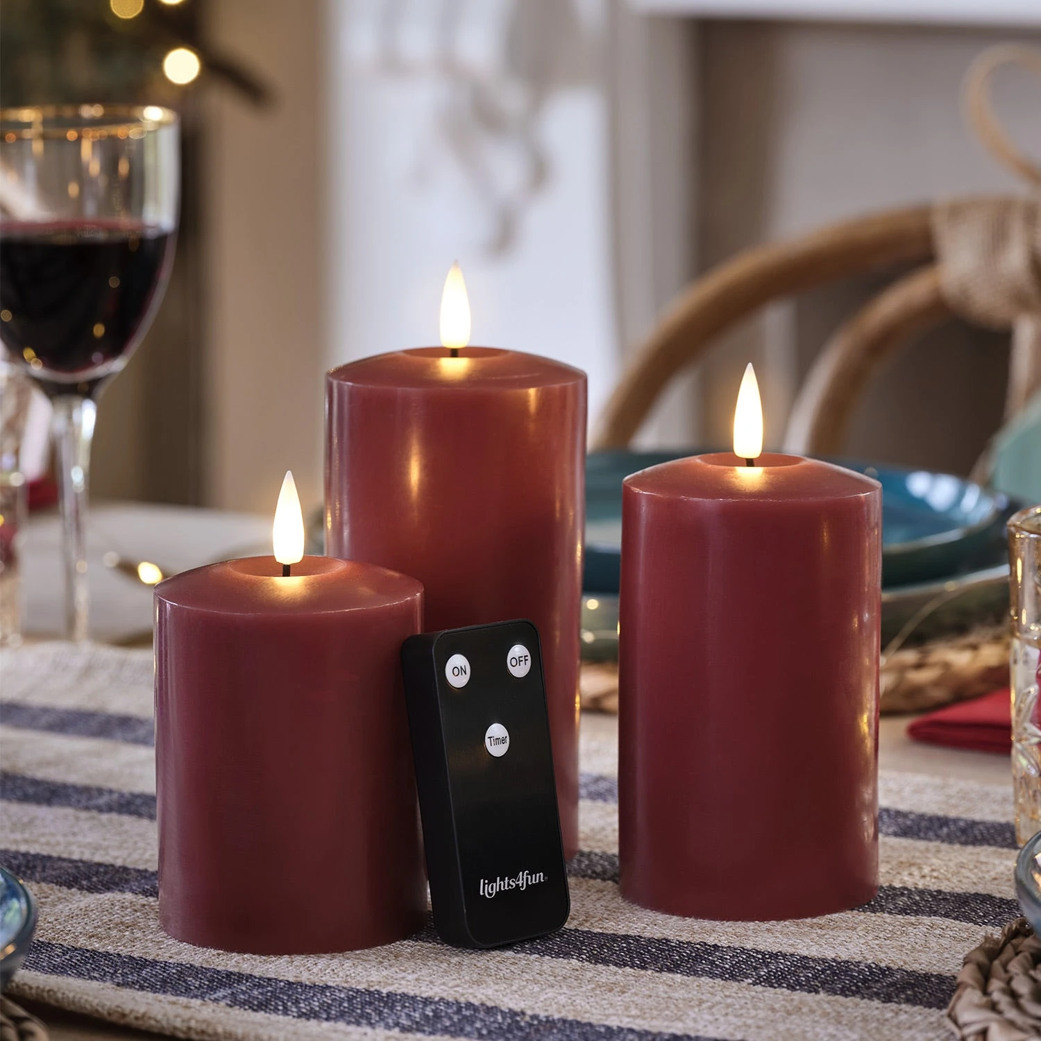 3 Bougies Pilliers TruGlow® Bordeaux à LED – Image 3