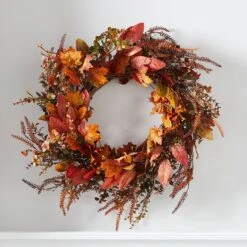 Lot De Couronne Et Guirlande Automne-Hiver En Marron Et Vert Vieilli