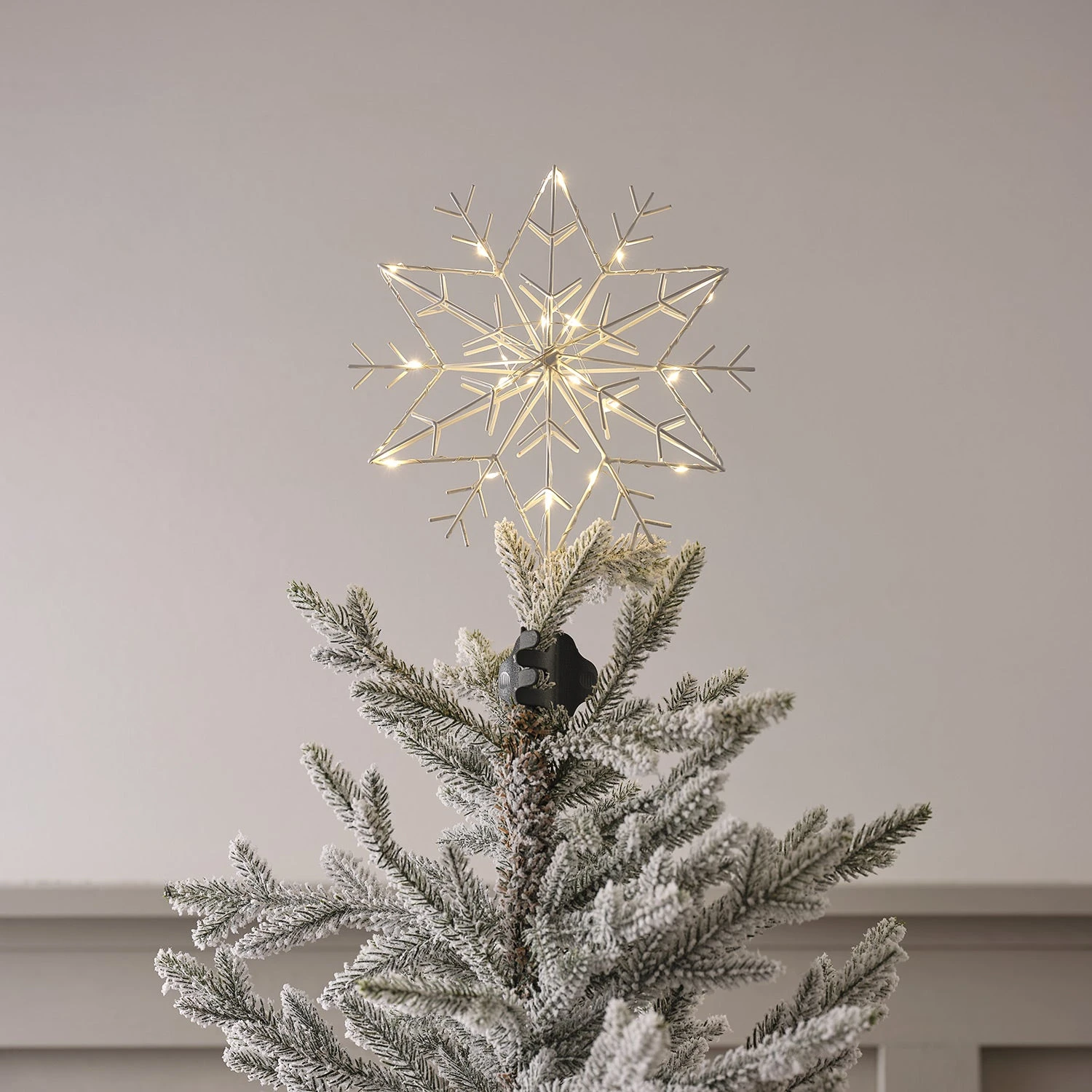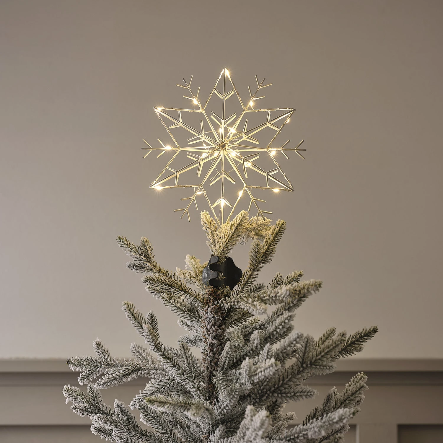 Ajoutez une finition éblouissante à votre sapin avec ce cimier lumineux en forme de flocon de neige et créez une ambiance féerique pour les fêtes. Fabriqué en métal argenté et alimenté par des piles, ce cimier apportera une touche d’élégance et de magie à votre décoration festive. Orné de 25 micro LED blanc chaud, il diffuse une lumière douce et chaleureuse, transformant votre sapin en un véritable spectacle enchanteur. Facile à installer, il suffit d’insérer 3 piles AA dans le compartiment prévu à cet effet et d’activer la minuterie optionnelle de 6 heures pour profiter d’une illumination automatique chaque soir à la même heure.