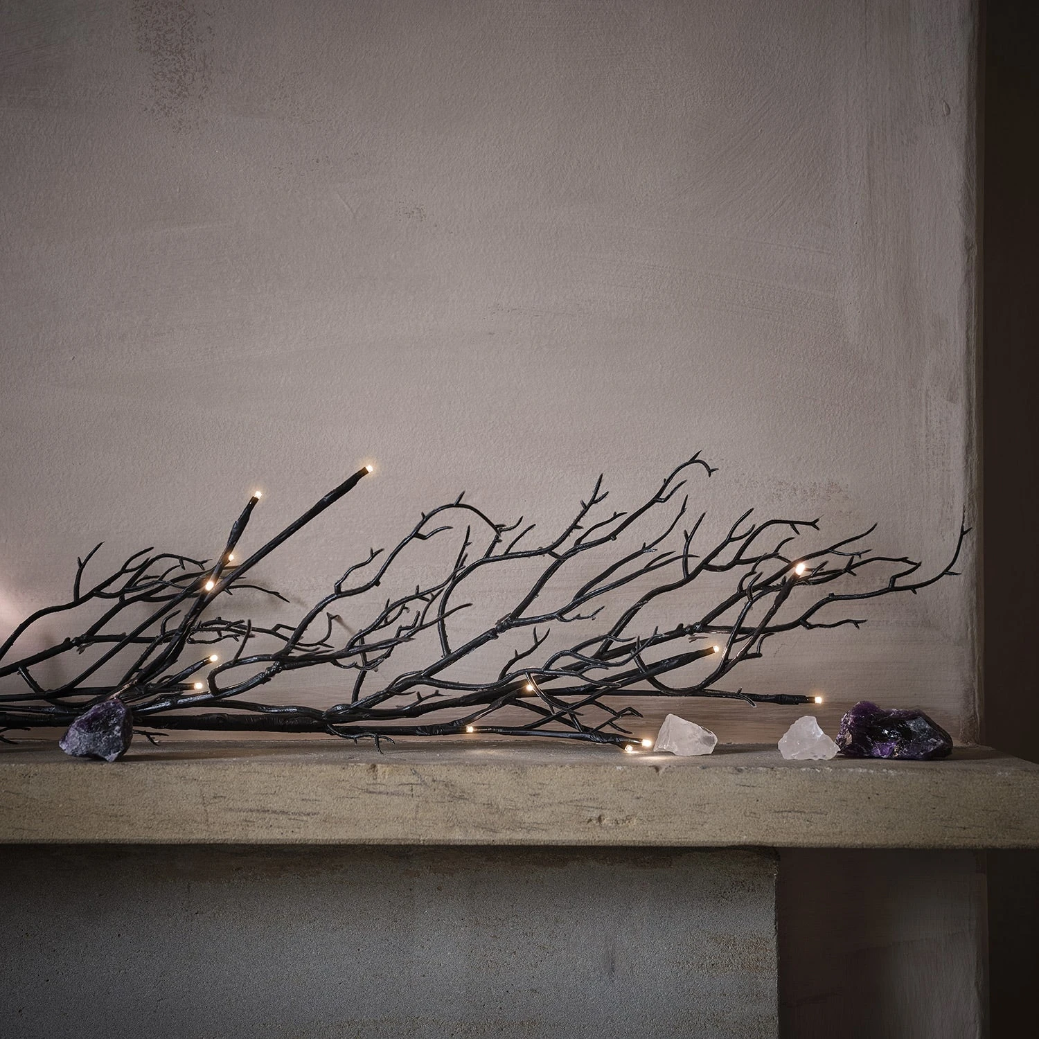 Donnez une touche mystérieuse à vos soirées d’halloween grâce à notre couronne et guirlande de branches pré-éclairées. Composé d’une couronne de 40 cm et d’une guirlande de 1,5 m, ce duo à la fois effrayant et élégant est illuminé par un total de 64 LED blanc chaud, insuflant une lueur envoûtante tous les soirs. || Associez les à nos piquets de jardin en forme de branches mortes assortis (vendues séparément) pour complèter le look et placez-les autour de votre porte d’entrée pour un décor d’Halloween à couper le souffle. Pour les allumer, il suffit de placer 3 piles AA dans chacun des boîtiers à piles et de choisir la fonction minuterie optionnelle de 6 heures pour une véritable lueur sinistre à la même heure tous les soirs.