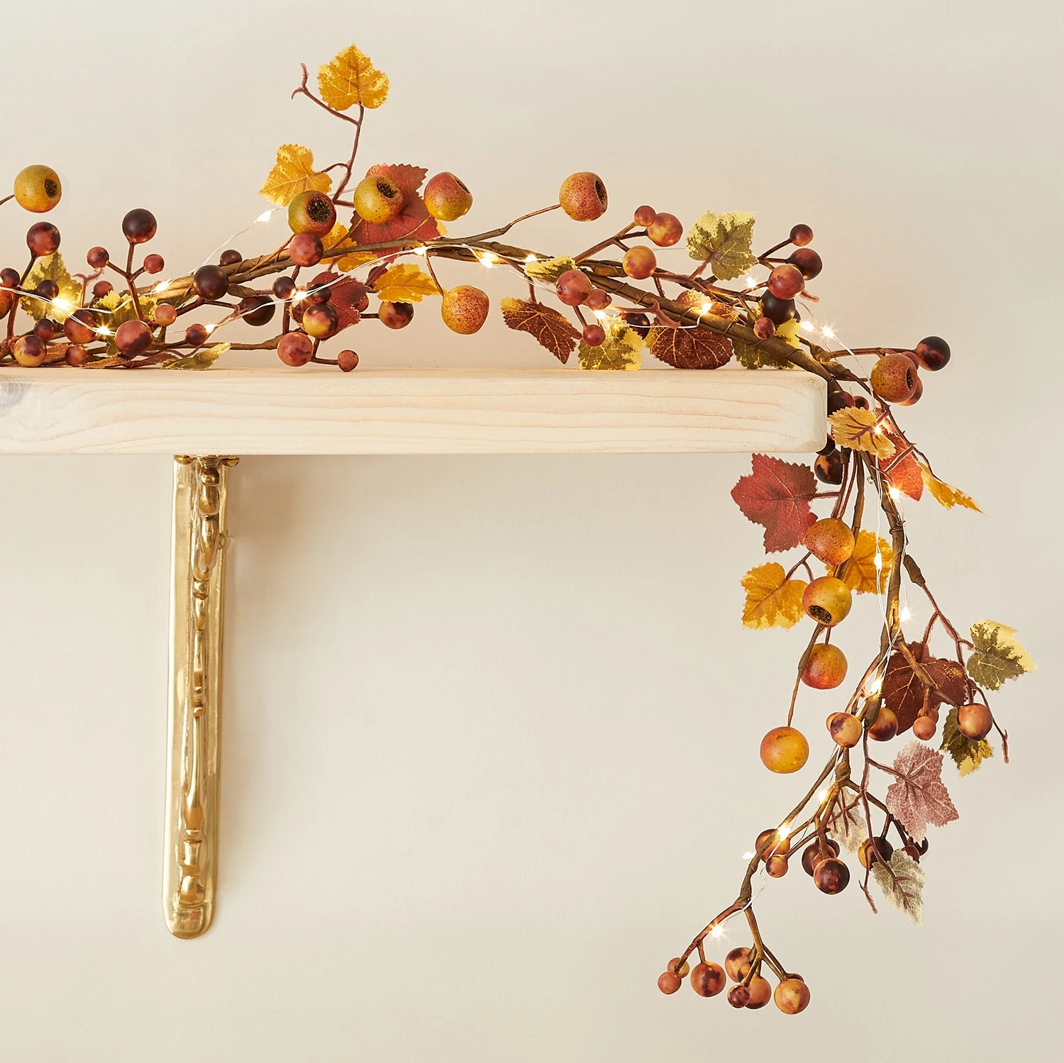 Cette ravissante guirlande annonce l’arrivée de l’automne à la maison. Agrémentée de différentes baies et de feuilles artificielles, notre guirlande minimaliste invite la nature chez vous en cette saison. Elle est pré-éclairée par des micro LED blanc chaud pour un éclairage chaleureux et doux tous les soirs. Mesurant 1,50 m de long, notre guirlande a la taille idéale pour être posée sur un manteau de cheminée ou comme chemin de table au sein d’une déco d’automne, pour les grandes occasions ou le bonheur de tous les jours ! Insérez simplement les piles, programmez la minuterie et attendez patiemment le soir pour la voir briller de mille feux !