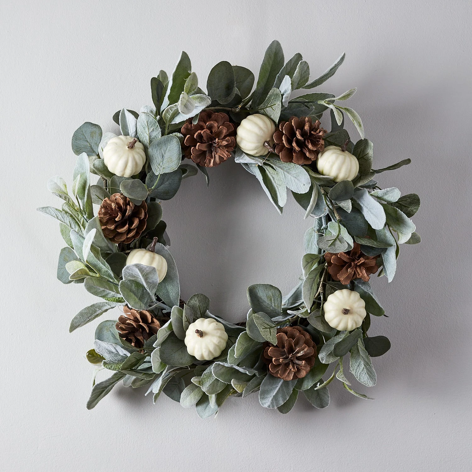 Le combo parfait pour la saison ! Nous avons associé une guirlande micro LED à notre couronne citrouilles et eucalyptus pour créer un objet ultra tendance cette saison. || Dotée de feuillages d’eucalyptus artificiels, de pommes de pin et de citrouilles, cette couronne fera son plus bel effet accrochée sur une porte d’entrée ou posée au centre d’une table. La guirlande micro LED est incroyablement souple et peut donc être entortillée autour de la couronne en toute facilité ! Insérez simplement les piles, programmez la minuterie facultative et attendez qu’elle s’illumine tous les soirs à la même heure.